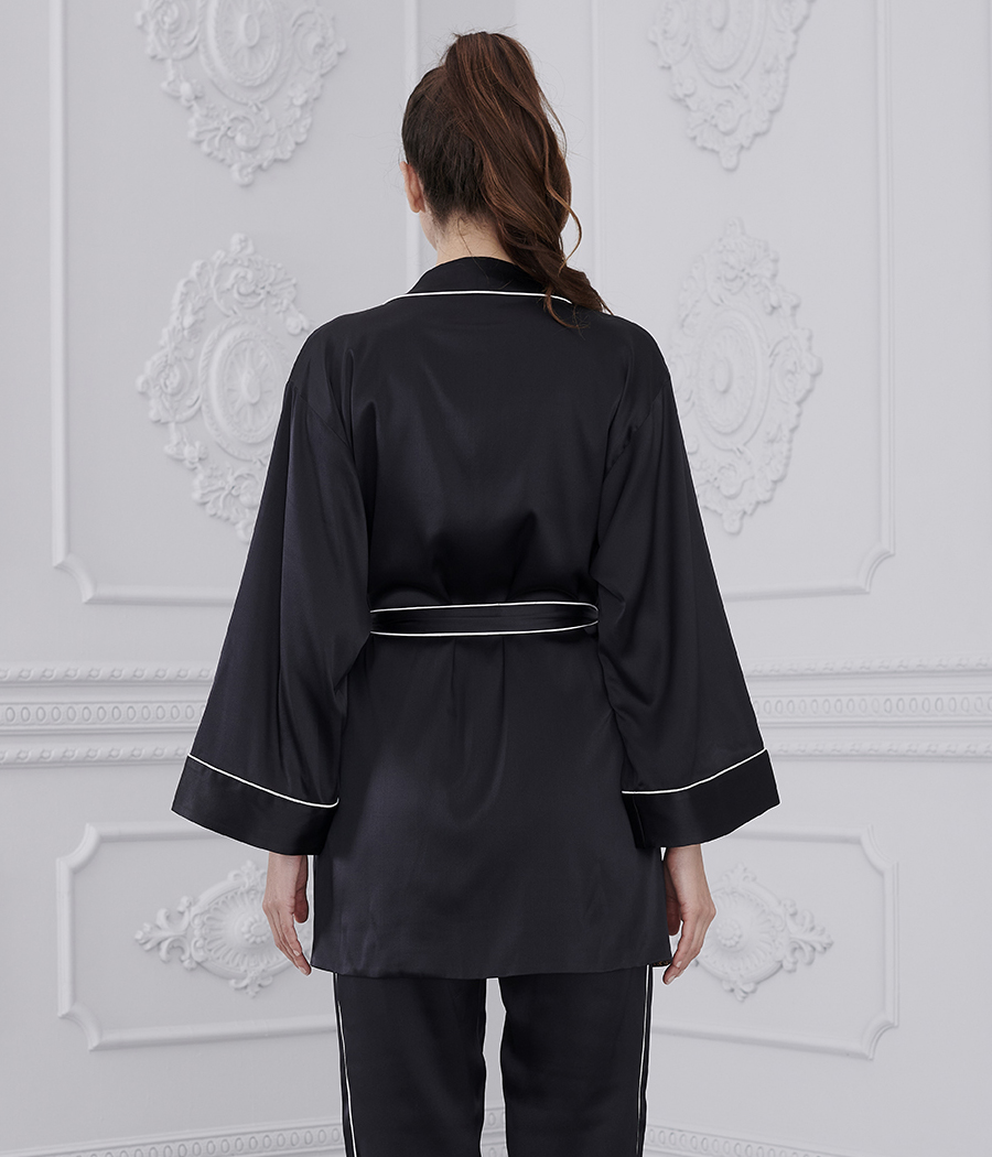 Kimono di raso di seta rifinito con Piping.