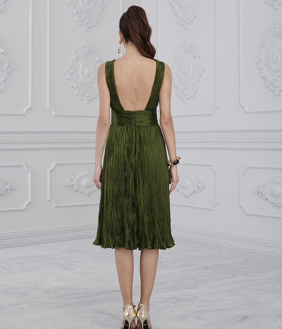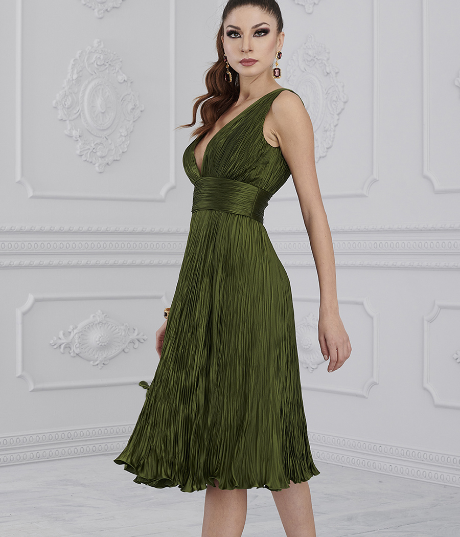 Abito drappeggiato a mano con scollo a v, sfoderato nella gonna.